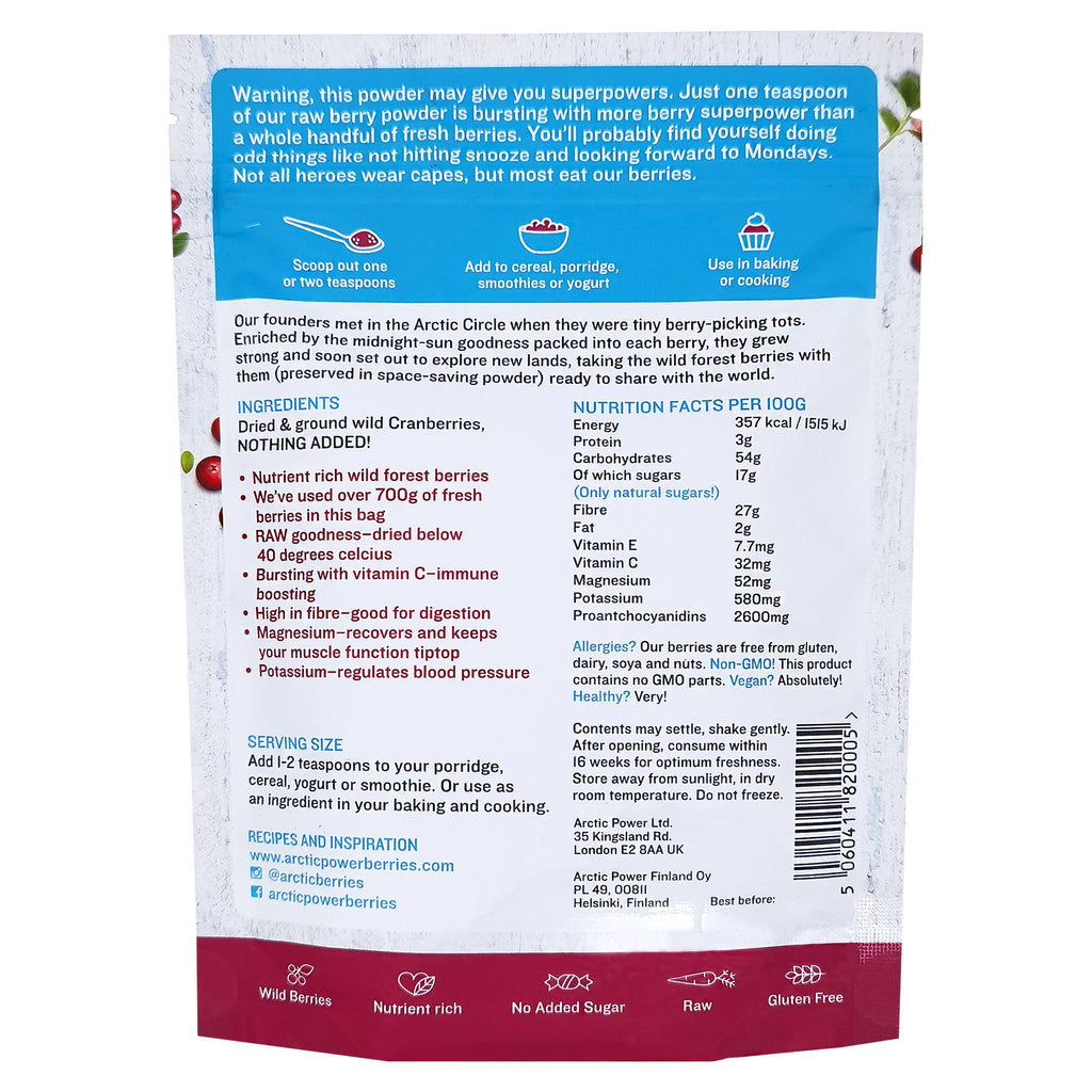 Arctic Power Berries Vegan and Gluten Free Cranberry Powder