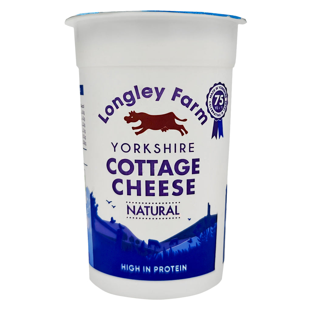 What makes it uniquely ours is the signature soured-cream dressing. We switched from the traditional sweet preparation to a rich, tangy soured-cream dressing, creating a distinct flavour profile that is truly English-Style Cottage Cheese. It is proudly "born and bred at Longley Farm," bringing a piece of dairy history to your table.