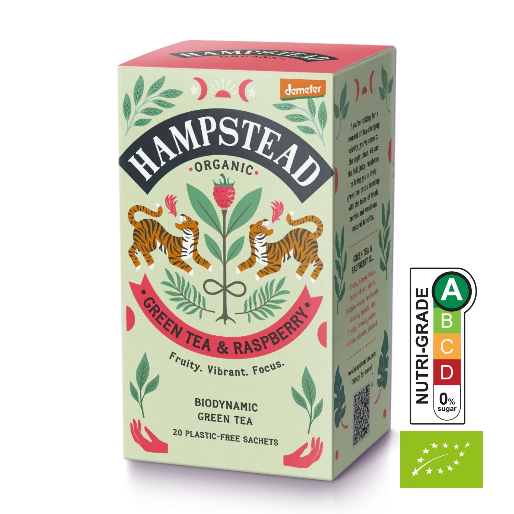 Hampstead Tea Organic Biodynamic Green Tea with Raspberry Tea Bags