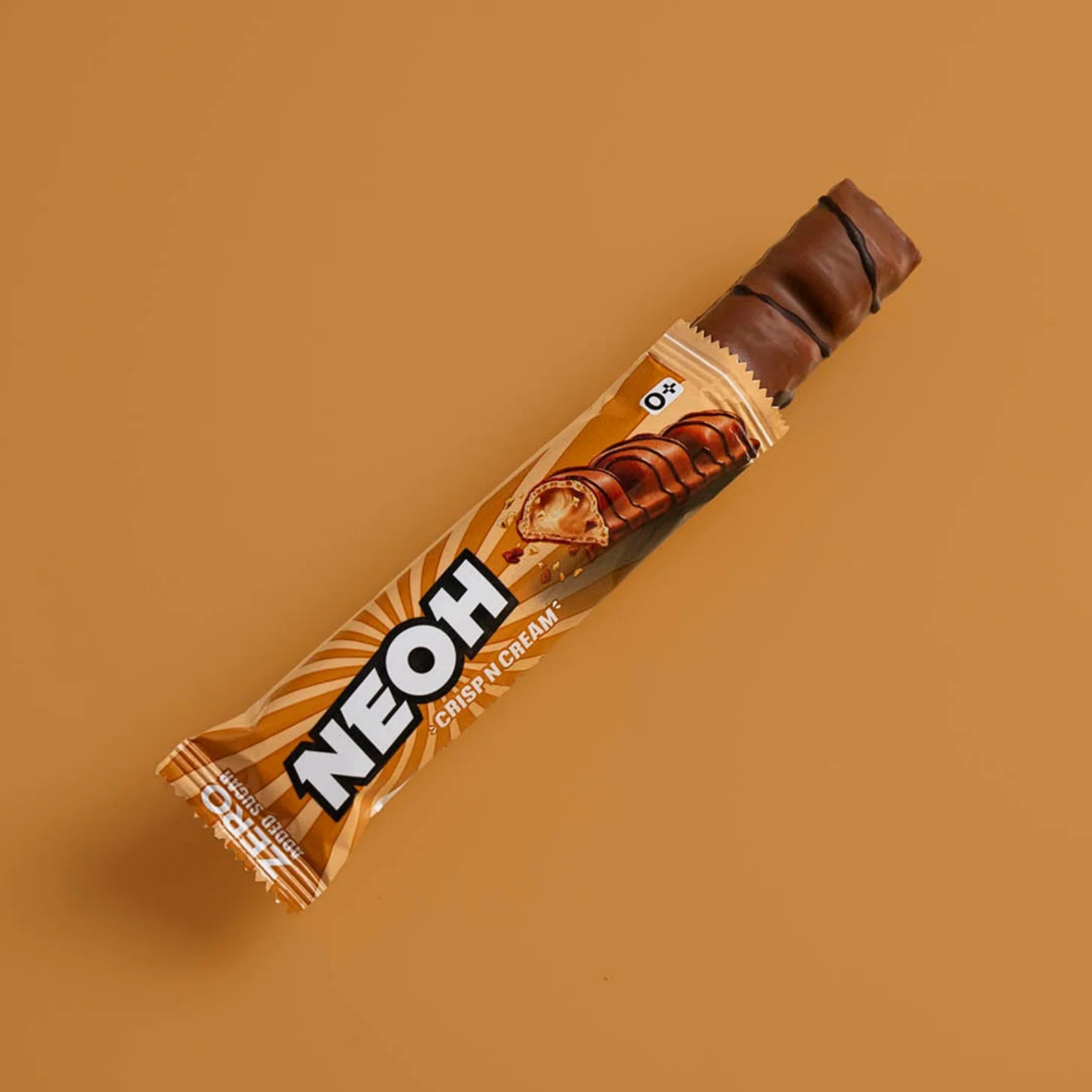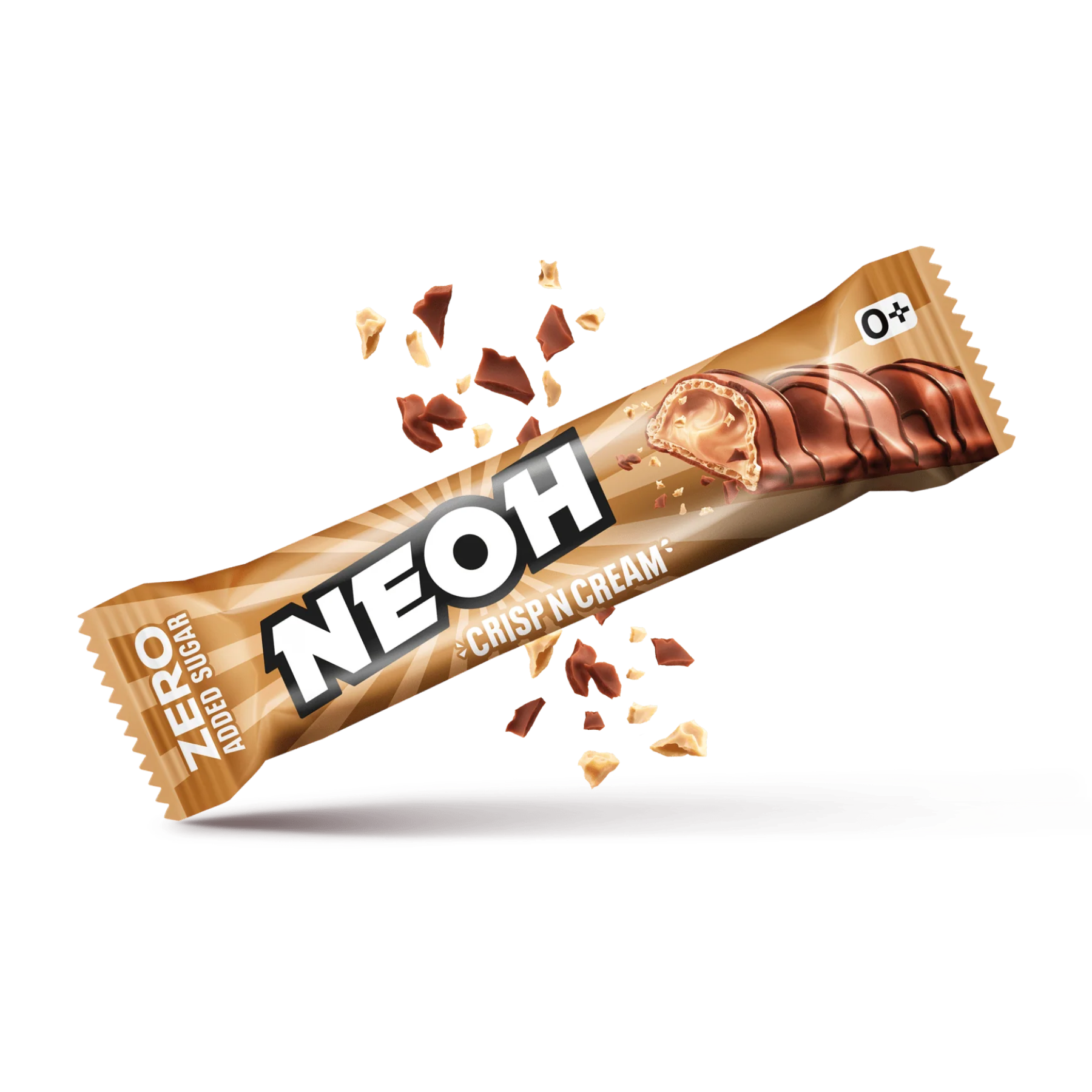 New to the team: the CRISP N CREAM – the new star in the NEOH sky. A crispy wafer filled with wonderfully airy hazelnut cream, covered in smooth chocolate, and, as always, with ZERO added sugar. Forget the comparable: the same enjoyment, no sugar required!