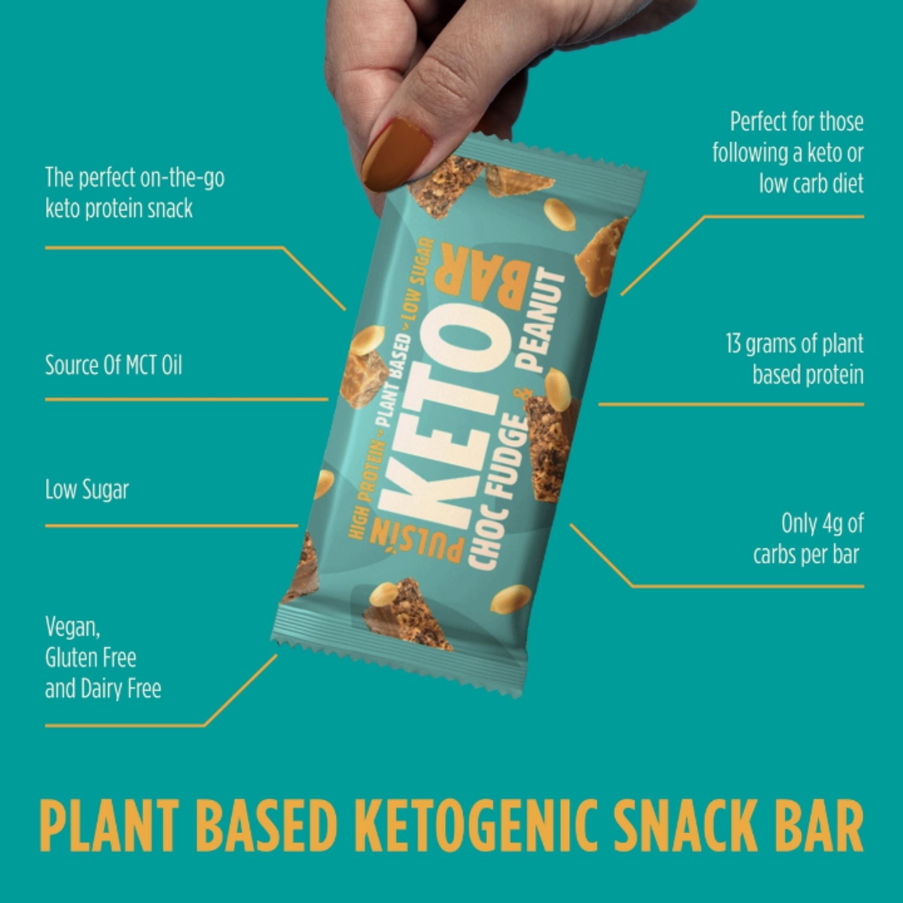 High Protein. Low Sugar. Contains MCT Oil. Plant Based Ketogenic Snack Bar.